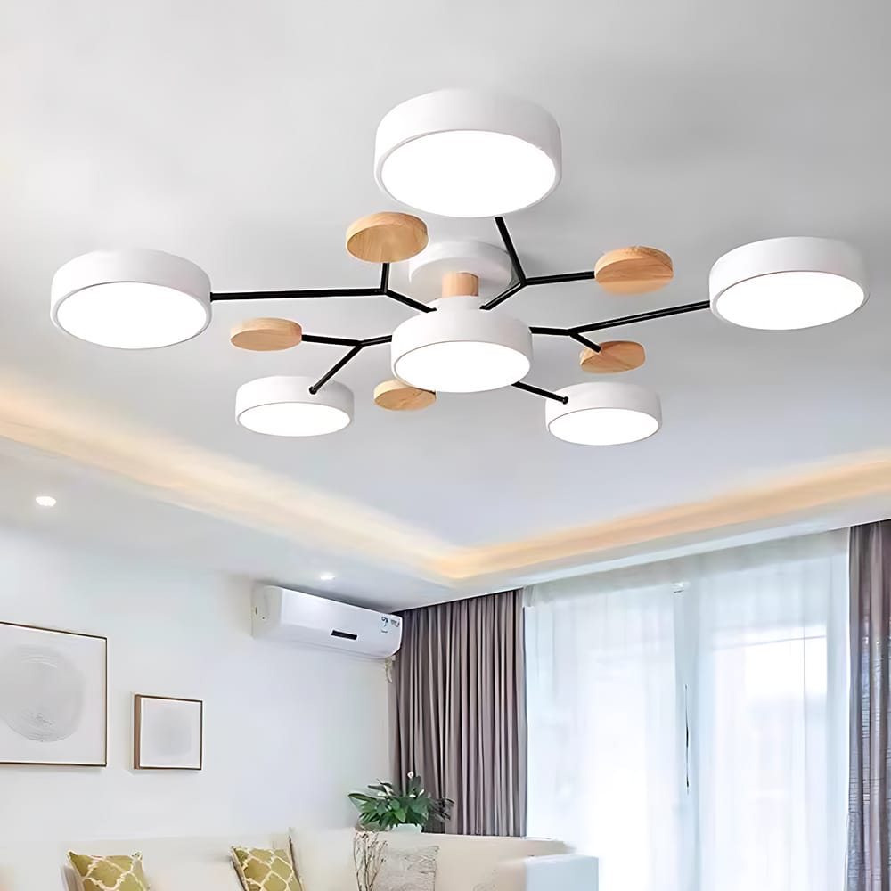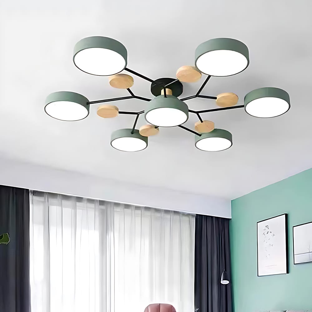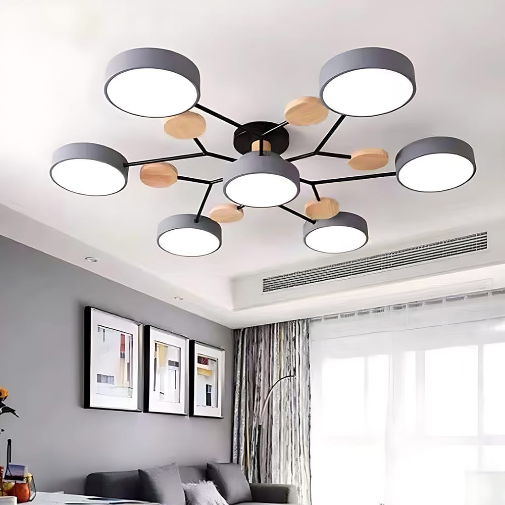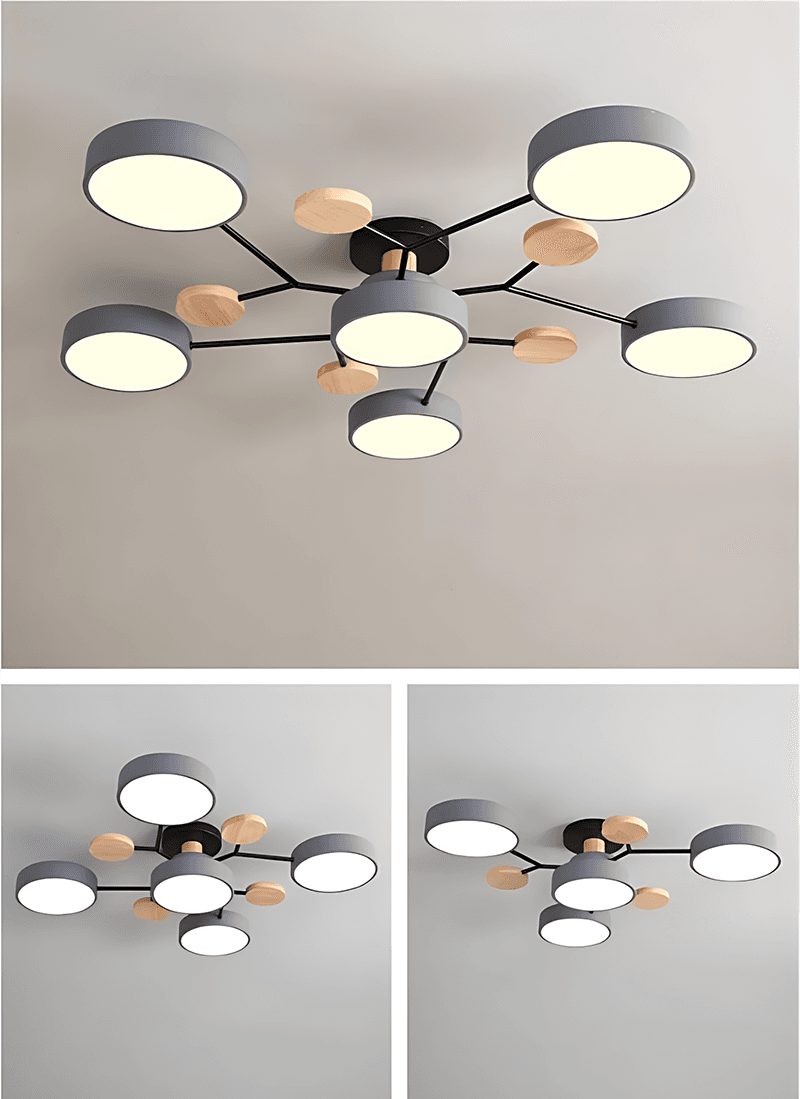 This ceiling lamp combines wood and metal materials, creating an attractive and modern look that enhances your home decor.