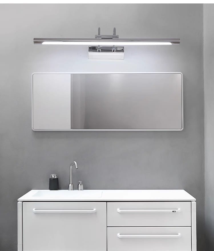 This high-end vanity light features a stainless steel body and a sleek, clean design that adds a refined touch to your home.