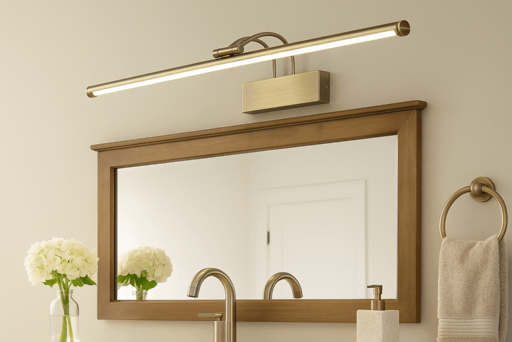 - Bar Lights – A sleek, horizontal bar mounted over the mirror, ideal for modern bathrooms.